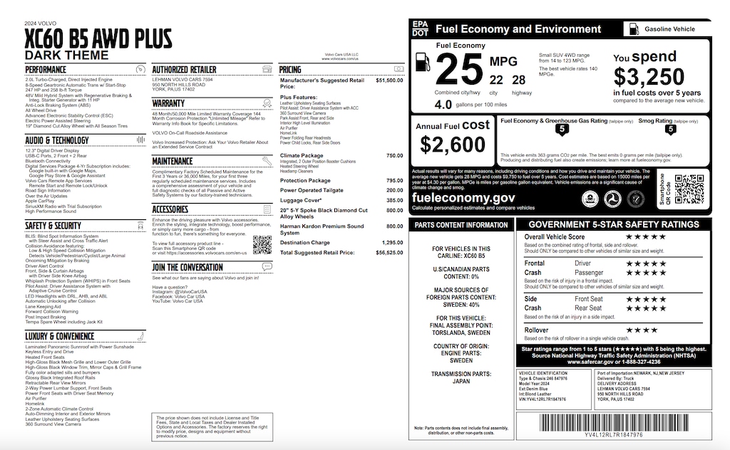 It offers the latest in technological innovation and style. Turbocharger technology provides forced air induction, enhancing performance while preserving fuel economy. With just over 15,000 miles on the odometer, this 4 door sport utility vehicle prioritizes comfort, safety and convenience. Volvo prioritized practicality, efficiency, and style by including: front and rear reading lights, tilt steering wheel, and seat memory. Smooth gearshifts are achieved thanks to the efficient 4 cylinder engine, and for added security, dynamic Stability Control supplements the drivetrain.
